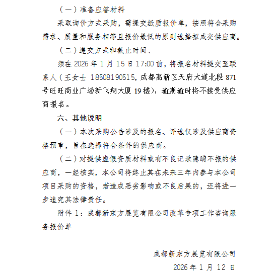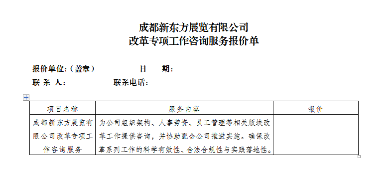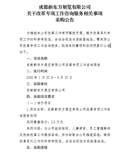 成都新东方展览有限公司 关于改革专项工作咨询服务相关事项采购公告