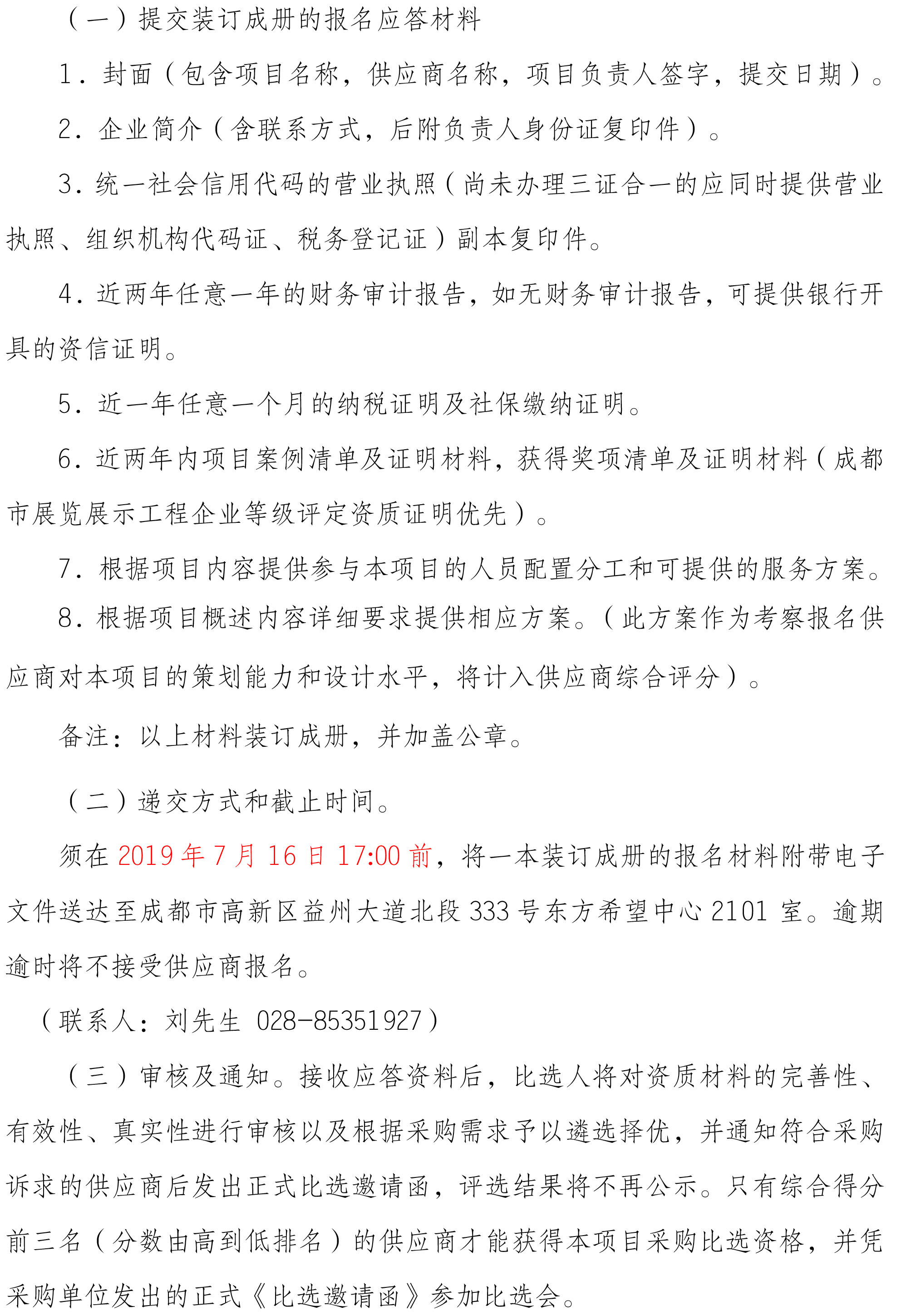 采购公告丨成都新东方展览有限公司2019第二届世界文化名城论坛•天府论坛服务采购公告